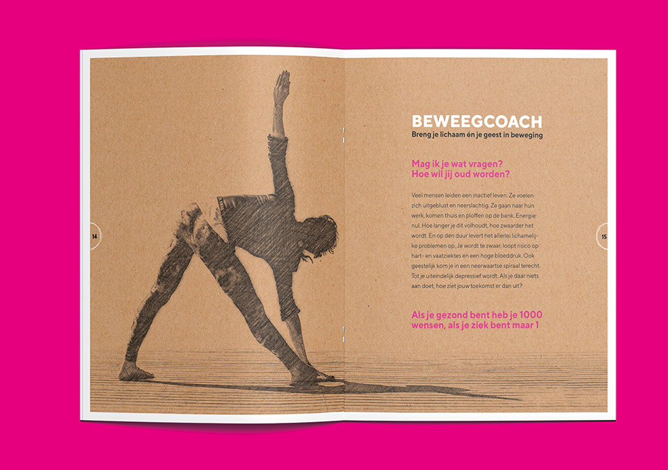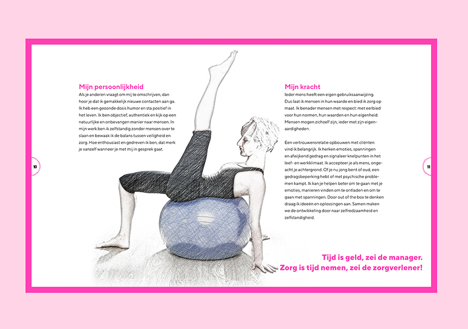 Ans Verstegen, forensisch therapeutisch werker en al jaren werkzaam in de hulpverlening. Haar missie: jouw leven meer kleur geven. Zodat je elke dag weer opstaat met een lach op je gezicht. Voor deze inspirerende vrouw mocht ik een huisstijl en een brochure / magazine ontwikkelen. Krachtig en kleurrijk was haar wens. De gekozen beeldtaal is helemaal ANS: energiek als neonroze gecombineerd met zwart; Flower én POWER!